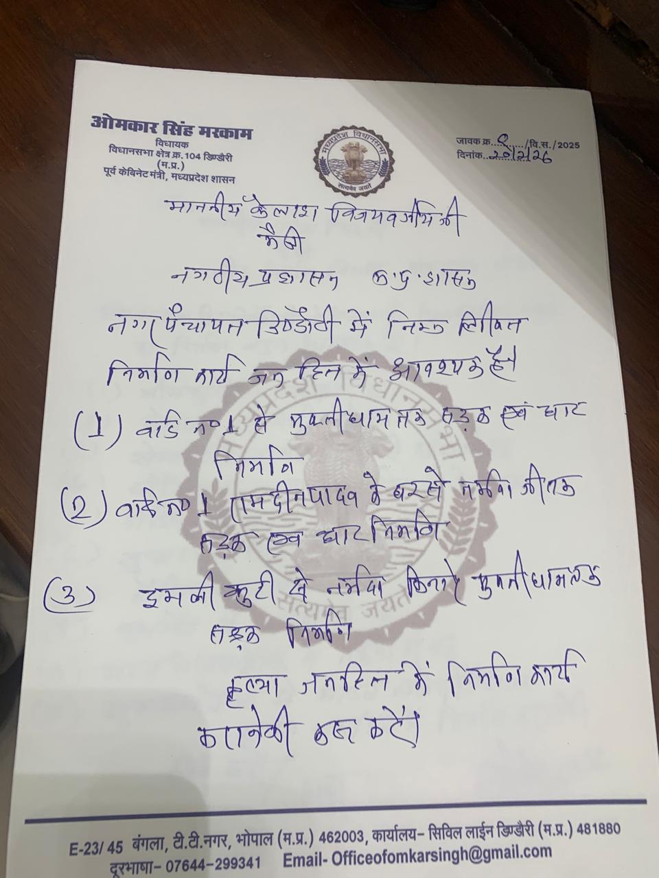वहीं इस मामले में डिंडौरी विधायक ओमकार सिंह मरकाम ने भी पहल की है। उन्होंने नगरीय प्रशासन मंत्री कैलाश विजयवर्गीय को पत्र लिखकर वार्ड नंबर-1 से मुक्तिधाम तक सड़क एवं घाट निर्माण, रामदीन यादव के घर से नर्मदा नदी तक सड़क निर्माण और इमली कुटी से नर्मदा किनारे मुक्तिधाम तक सड़क बनाने की मांग उठाई है।