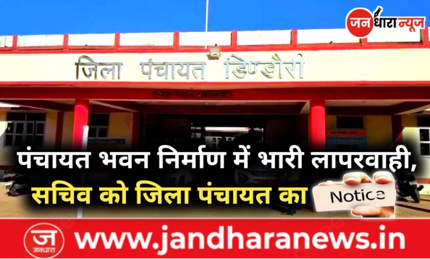 डिंडौरी। जिले शहपुरा जनपद पंचायत अंतर्गत ग्राम पंचायत भवन निर्माण में गंभीर लापरवाही को लेकर जिला पंचायत डिण्डौरी ने कड़ा रुख अपनाया है। ग्राम पंचायत देवरीकला के सचिव अशोक कुमार तिवारी को कारण बताओ सूचना पत्र जारी किया गया है।
