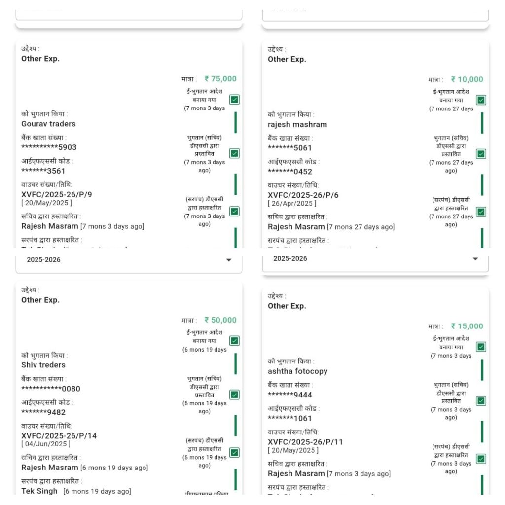 ग्राम पंचायत में विकास कार्यों के नाम पर किए गए सभी भुगतान की जांच कराई जाएगी।