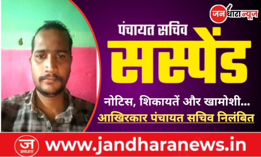 डिंडौरी। पदीय दायित्वों के निर्वहन में लापरवाही, ग्राम पंचायत मुख्यालय से अनाधिकृत अनुपस्थिति एवं शासकीय कार्यों में उदासीनता के आरोप में ग्राम पंचायत ढोढा, जनपद पंचायत शहपुरा के सचिव जयंत मार्को को जिला पंचायत डिण्डौरी द्वारा तत्काल प्रभाव से निलंबित कर दिया गया है।