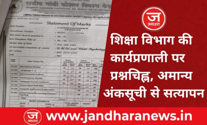 मध्यप्रदेश के डिंडौरी जिले में अतिथि शिक्षकों की नियुक्ति प्रक्रिया पर सवाल खड़े हो गए हैं। जानकारी के अनुसार, जिले के कई विद्यालयों में राजीव गांधी कौशल विकास के नाम से जारी DEL IED (Diploma in Elementary Education) अंकसूची के आधार पर शिक्षक कार्यरत हैं। चौंकाने वाली बात यह है कि इन अंकसूचियों में साफ तौर पर लिखा है कि यह NCERT द्वारा मान्य नहीं है, इसके बावजूद संकुल प्राचार्यों द्वारा इन दस्तावेजों का ऑनलाइन सत्यापन भी कर लिया गया है।