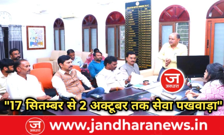 डिंडौरी। जिले में 17 सितम्बर से 02 अक्टूबर 2025 तक सेवा पखवाड़ा अभियान का शुभारंभ किया जाएगा। इसकी तैयारियों को लेकर कलेक्टर श्रीमती नेहा मारव्या ने वरिष्ठ नागरिकों एवं समाजसेवियों की बैठक ली और अभियान में सक्रिय भागीदारी कर इसे सफल बनाने की अपील की। कलेक्टर ने कहा कि सेवा पखवाड़ा का मुख्य उद्देश्य समाज के अंतिम व्यक्ति तक शासन की योजनाओं एवं सेवाओं का लाभ पहुँचाना है। इस दौरान रक्तदान शिविर, स्वास्थ्य परीक्षण, स्वच्छता अभियान सहित अनेक जनहितकारी कार्यक्रम आयोजित किए जाएंगे।