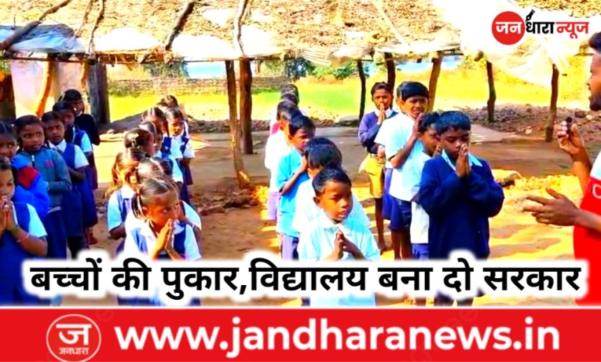 डिंडौरी। मध्यप्रदेश के डिंडौरी जिले के विकासखंड अंतर्गत ग्राम भोडासाज माल के नेटी टोला में शिक्षा की हालत इतनी दयनीय है कि बच्चों का भविष्य खतरे में पड़ गया है। यहाँ के छोटे-छोटे मासूम बच्चे घास-फूस से बनी झोपड़ी नुमा छप्पर के नीचे बैठकर पढ़ाई करने को मजबूर हैं। बारिश, धूप और ठंड में इन बच्चों की सुरक्षा का कोई इंतजाम नहीं है, लेकिन फिर भी ये मासूम अपनी मासूमियत और जिज्ञासा के दम पर शिक्षा ग्रहण कर रहे हैं।