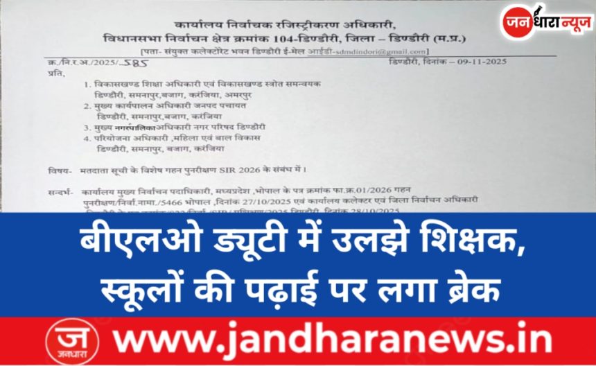 Dindori News : बीएलओ ड्यूटी में लगे 75% शिक्षक, प्रभावित हो रही पढ़ाई,अर्धवार्षिक परीक्षा नजदीक, शिक्षा व्यवस्था पर सवाल….