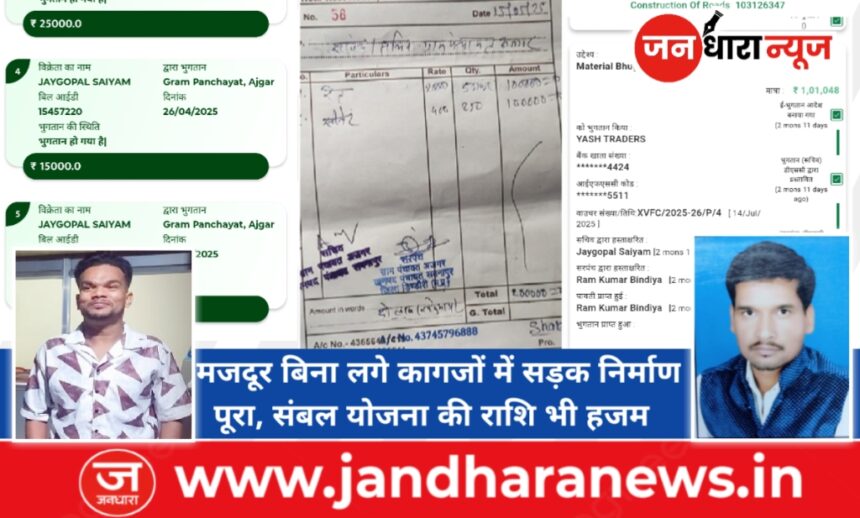 सरपंच सचिव की मिलीभगत से चल रहा विकास निधि पर खुला दुरुपयोग …. मध्यप्रदेश के डिंडौरी जिले के जनपद पंचायत समनापुर अंतर्गत ग्राम पंचायत अजगर में विकास निधि के दुरुपयोग लगातार बढ़ रही हैं। सरपंच राम कुमार बिंदिया और सचिव जय गोपाल सैयाम के कारनामों ने यह स्पष्ट कर दिया है कि प्रदेश सरकार द्वारा … Continue reading Dindori Panchayat Corruption : अजगर ग्राम पंचायत में सरपंच-सेक्रेटरी की लूट : अंत्येष्टि सहायता 5 माह में निकाले 95 हजार, सड़क की पूरी राशि सप्लायर के जेब में , बिना मजदूर कैसे हो रहा निर्माण…