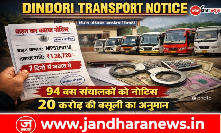 डिंडौरी। जिले में वाहन कर बकाया को लेकर परिवहन विभाग ने सख्त रुख अपनाया है। जिला परिवहन अधिकारी कार्यालय, डिंडौरी द्वारा कर बकाया होने पर एक वाहन धारक सहित कुल 94 बस संचालकों को नोटिस जारी किया गया है। विभाग द्वारा की गई इस कार्रवाई से करीब 20 करोड़ रुपये की कर वसूली का अनुमान जताया जा रहा है।