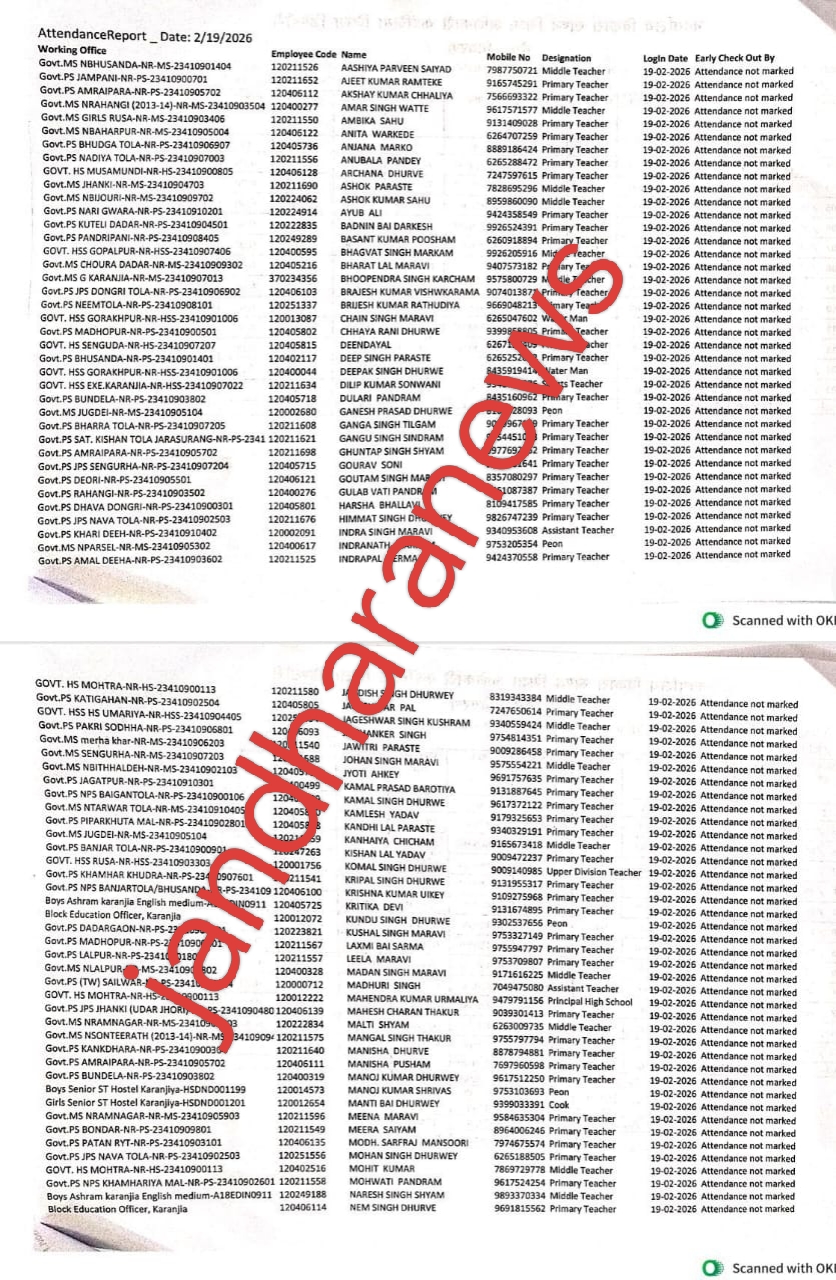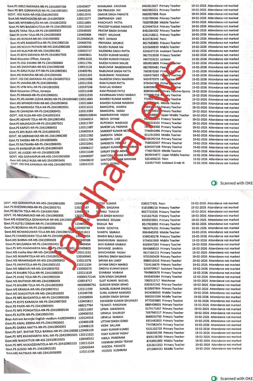 सहायक आयुक्त, जनजातीय कार्य विभाग, के पत्र और दिनांक 20.11.2025 के वीसी में दिए निर्देशों के आधार पर, यह सुनिश्चित किया गया है कि ई-अटेंडेंस शत-प्रतिशत दर्ज हो। जिन कर्मचारियों ने अनुपालन नहीं किया, उनके एक दिन का वेतन काटा जाएगा और यह सेवा पुस्तिका में दर्ज किया जाएगा।