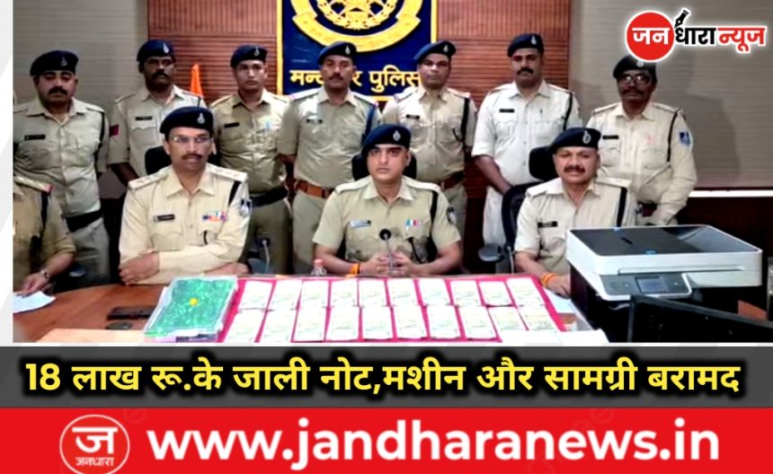 मध्यप्रदेश के मंदसौर पुलिस ने नकली नोटों के अंतर्राज्यीय गिरोह का भंडाफोड़ करते हुए एक बड़ी कामयाबी हासिल की है। पुलिस ने गिरोह के सरगना गुरजीत सिंह को पंजाब के पटियाला जिले के सनौर से गिरफ्तार किया है। आरोपी के कब्जे से करीब 18 लाख रुपये के नकली नोट और नोट छापने में उपयोग की जाने वाली मशीन, स्याही, कागज़ सहित अन्य सामग्री बरामद की गई है।