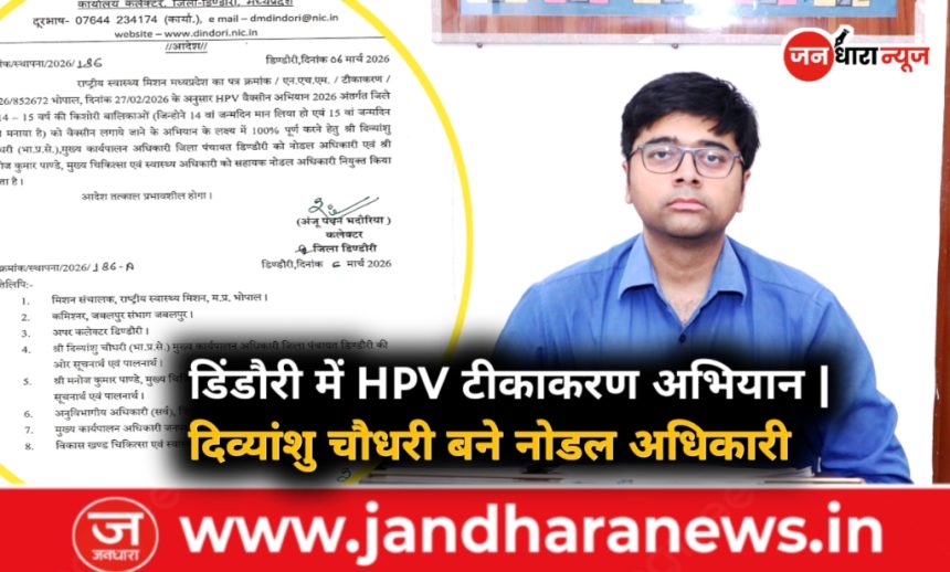 डिंडौरी। कलेक्टर अंजू पवन भदौरिया के आदेशानुसार जिले में HPV वैक्सीन अभियान 2026 को प्रभावी रूप से संचालित करने के लिए नोडल अधिकारी नियुक्त किए गए हैं। यह अभियान जिले की 14 से 15 वर्ष आयु वर्ग की किशोरी बालिकाओं को टीकाकरण से आच्छादित करने के उद्देश्य से चलाया जाएगा।