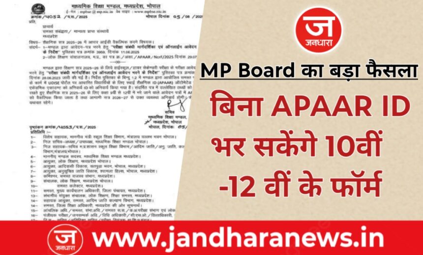 MP Board : बिना अपार आईडी के जमा होंगे 10वीं-12वीं के परीक्षा फॉर्म….