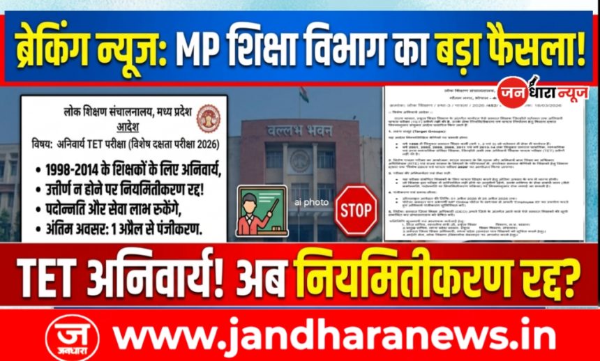 भोपाल: लोक शिक्षण संचालनालय, मध्य प्रदेश ने 18 मार्च 2026 को विशेष आदेश जारी किया है, जिसमें राज्य के उन सभी शिक्षकों को चेतावनी दी गई है जिन्होंने अब तक अनिवार्य शिक्षक पात्रता परीक्षा (TET) उत्तीर्ण नहीं की है।