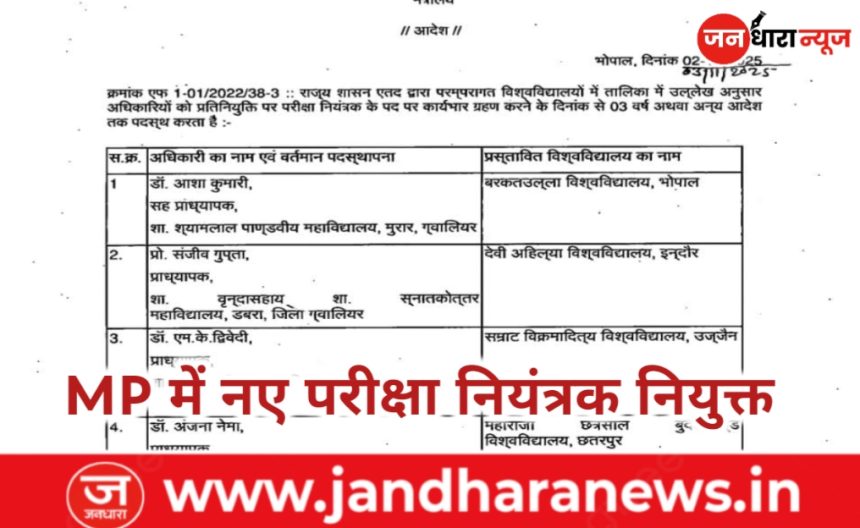 Mp News : उच्च शिक्षा विभाग का बड़ा निर्णय — परंपरागत विश्वविद्यालयों में नए परीक्षा नियंत्रक नियुक्त, पांच प्राध्यापकों को दी गई जिम्मेदारी….
