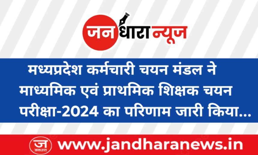 भोपाल: मध्यप्रदेश कर्मचारी चयन मंडल (MPPSC) ने गुरुवार को माध्यमिक शिक्षक एवं प्राथमिक शिक्षक चयन परीक्षा-2024 का परिणाम घोषित कर दिया। यह परीक्षा मध्यप्रदेश शासन के स्कूल शिक्षा विभाग एवं जनजातीय कार्य विभाग के तहत कुल 9,882 पदों पर शिक्षकों की सीधी भर्ती के लिए आयोजित की गई थी। अभ्यर्थी अपना परिणाम ई.एस.बी की वेबसाइट http://www.esb.mp.gov.in से डाउनलोड या मुद्रित कर सकते हैं।