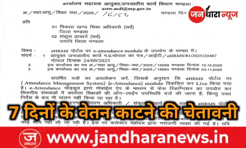 — जनजातीय कार्य विभाग मण्डला ने जारी किया सख्त निर्देश, 7 दिनों के वेतन काटने की चेतावनी