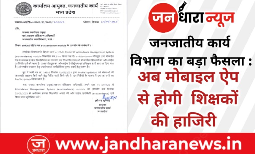 भोपाल। जनजातीय कार्य विभाग मध्यप्रदेश ने शिक्षकों की उपस्थिति दर्ज करने के लिए अत्याधुनिक eHRMS पोर्टल पर e-Attendance मॉड्यूल की शुरुआत कर दी है। अब प्रदेशभर के विभागीय संस्थानों में कार्यरत शिक्षकों की उपस्थिति मोबाइल ऐप आधारित फेस रिकग्निशन तकनीक से ऑनलाइन दर्ज होगी।