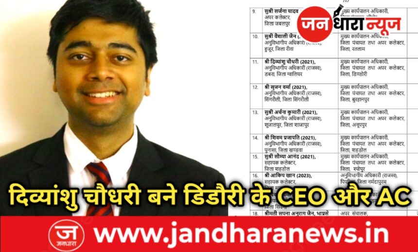 दिव्यांशु चौधरी (2021) को मुख्य कार्यपालन अधिकारी, जिला पंचायत डिंडौरी बनाया गया।