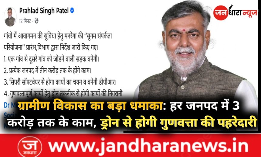 पंचायत, ग्रामीण विकास और श्रम सरकार मंत्री पहलाद पटेल ने अपने सोशल मीडिया अकाउंट में पोस्ट करते हुए जानकारी साझा किया है कि परियोजना के तहत एक गांव से दूसरे गांव को जोड़ने वाली सड़कों का निर्माण किया जाएगा, जिससे ग्रामीणों को शिक्षा, स्वास्थ्य, बाजार और अन्य आवश्यक सेवाओं तक पहुंचने में आसानी होगी। अब तक कई गांव कच्चे या संकरे मार्गों के कारण आवागमन की समस्या से जूझ रहे थे, जिन्हें इस योजना के माध्यम से राहत मिलने की उम्मीद है।