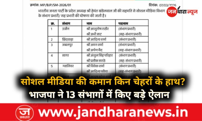 Politics News : MP BJP सोशल मीडिया विभाग में संभाग प्रभारियों की घोषणा, 13 संभागों में नई जिम्मेदारियां देखें पूरी लिस्ट…