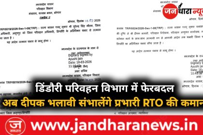 Dindori RTO News : डिंडौरी में परिवहन विभाग में बड़ा बदलाव ! दीपक भलावी बने प्रभारी जिला परिवहन अधिकारी…