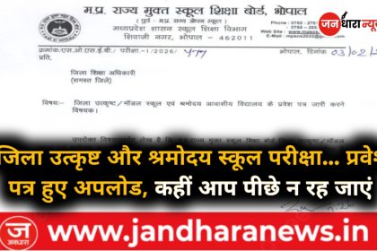 Mp Education Update : 8 फरवरी प्रवेश परीक्षा ! जिला उत्कृष्ट/मॉडल स्कूल व श्रमोदय विद्यालय के प्रवेश पत्र जारी….