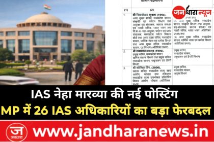 MP IAS Transfer : MP में प्रशासनिक हलचल, एक आदेश में बदली 26 IAS अधिकारियों की कुर्सियाँ, नेहा मारव्या को बड़ी जिम्मेदारी…