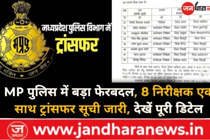 MP Police Transfer 2026 : मध्यप्रदेश पुलिस में निरीक्षकों के तबादले, 8 अधिकारियों की नई पदस्थापना…