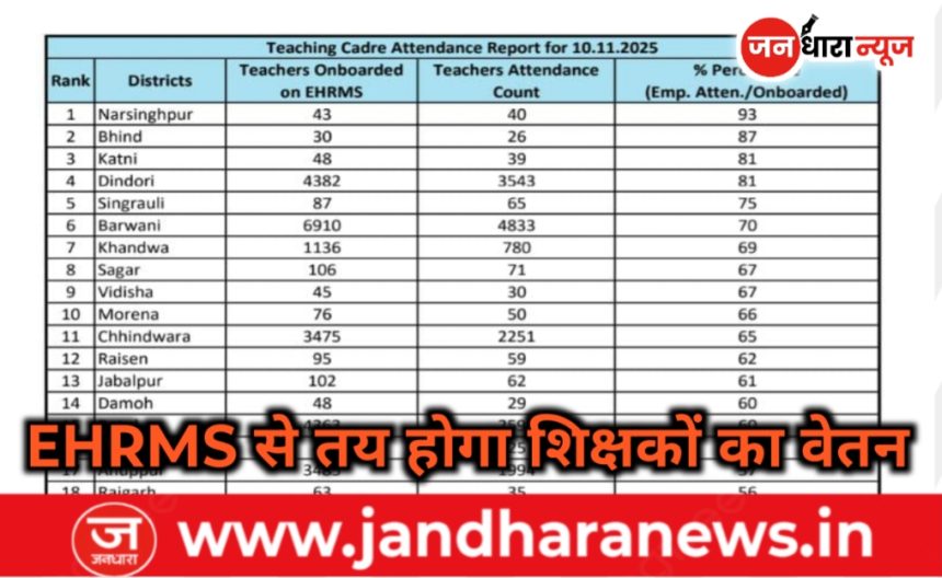 डिंडौरी। आयुक्त जनजातीय कार्य विभाग मध्यप्रदेश भोपाल द्वारा पत्र क्रमांक आईटी/EHRMS81/2025/20487 दिनांक 24 सितंबर 2025 के तहत राज्य के सभी कलेक्टरों और सहायक आयुक्तों को निर्देश दिए गए हैं कि जनजातीय कार्य विभाग में कार्यरत शिक्षकों का नवंबर माह का वेतन केवल EHRMS पोर्टल पर दर्ज ऑनलाइन उपस्थिति के आधार पर ही स्वीकृत किया जाएगा।