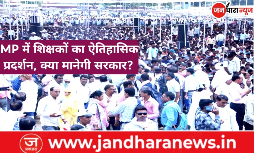 भोपाल। अध्यापक शिक्षक संयुक्त मोर्चा के प्रांतीय आह्वान पर 18 अप्रैल को राजधानी भोपाल में प्रदेशभर से आए एक लाख से अधिक शिक्षकों ने टीईटी परीक्षा के विरोध में जोरदार प्रदर्शन किया। बड़ी संख्या में एकत्रित शिक्षकों ने अपनी जायज़ मांगों के समर्थन में आवाज बुलंद करते हुए स्पष्ट कहा कि उनका संघर्ष अभी समाप्त नहीं हुआ है।