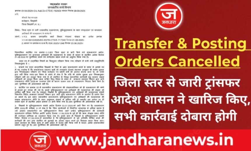 मध्यप्रदेश शासन जनजातीय कार्य विभाग ने डिंडौरी जिले से जारी प्रशासकीय स्थानांतरण, युक्तियुक्तकरण एवं छात्रावास अधीक्षकों की पदस्थापना से जुड़े आदेशों को निरस्त करने के निर्णय को यथावत रखा है। विभाग ने जिला कलेक्टर डिंडौरी को पत्र भेजकर स्पष्ट किया है कि पुनर्विचार की कोई आवश्यकता नहीं है।