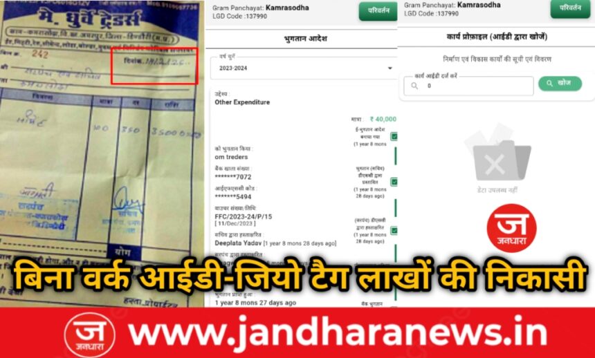 दरअसल, ग्राम पंचायत कमरासोढ़ा को वित्तीय वर्ष 2023-24 में विकास कार्यों के लिए लाखों रुपये स्वीकृत हुए थे। नियमों के मुताबिक किसी भी भुगतान से पहले वर्क आईडी बनाना, जियो टैग करना और कार्य का प्रयोजन तय करना अनिवार्य होता है। लेकिन यहां न तो वर्क आईडी बनाई गई, न जियो टैग हुआ और न ही कोई प्रयोजन तय किया गया। इसके बावजूद 3232,68 लाख रुपये की निकासी कर ली गई।